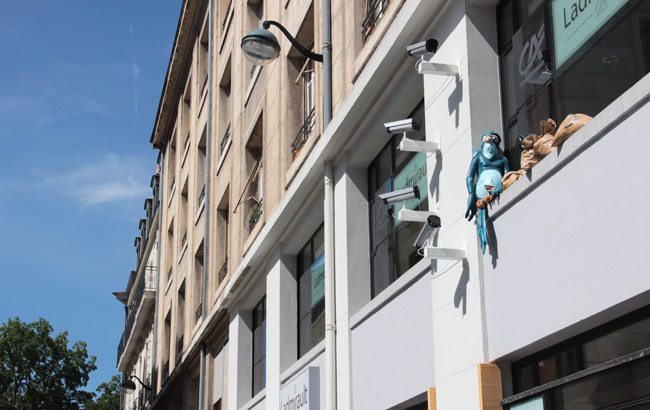 Dans la lignée de son travail d’illustrateur-plasticien, les propositions de Jérémie Rigaudeau se révèlent d’un humour parfois léger, parfois mordant. Armé de dérision, l’artiste s’amuse aussi bien du nom du commerce que du service proposé pour venir créer des enseignes qui en prennent le contre-pied. »